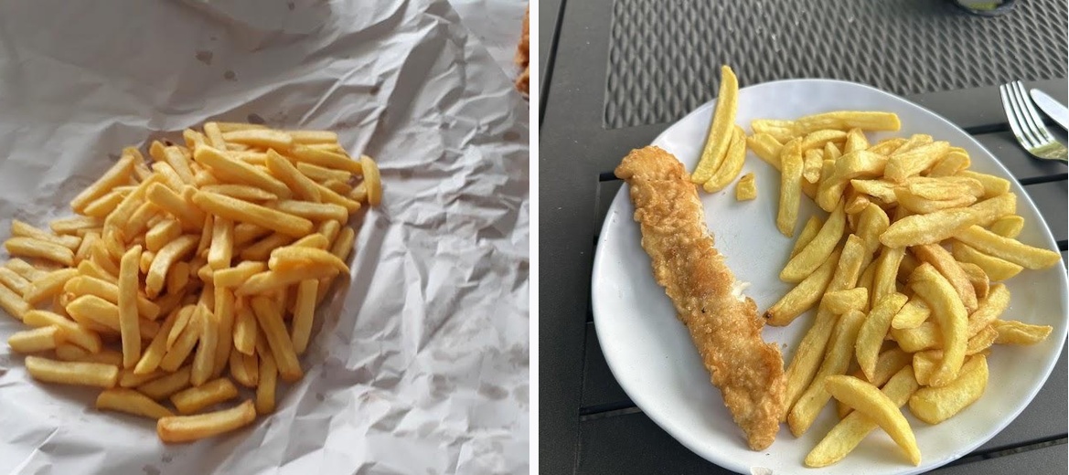 We ordered fish & chips last Saturday. We were very impressed how the fish & chips were cooked. The chips were nicely drained & the Gurnard fillets were perfectly cooked. And they also gave us an extra piece of fish.
